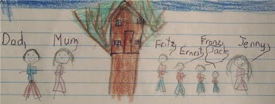 There were four boys. Fritz, Ernest, Jack and Franz. They had lots of animals, they even had an ostrich and buffalo. They even got to ride on them. Once they had a race and suddenly the mum and dad heard hooves and Franz came riding on his buffalo.